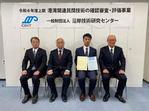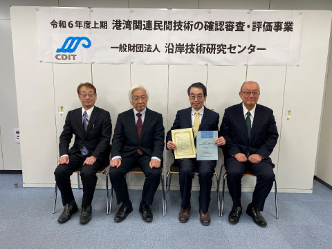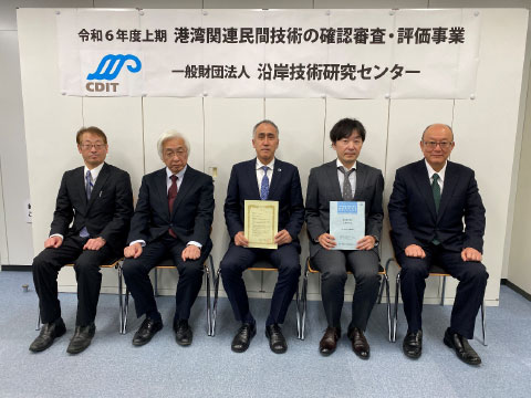 令和6年度上期分の6件の技術に対して、「港湾関連民間技術の確認審査・評価委員会」(委員長は菊池喜昭 前東京理科大学教授)で審査・評価を行い、その結果を踏まえて、令和6年12月11日に以下の6件について評価証を交付しました。
