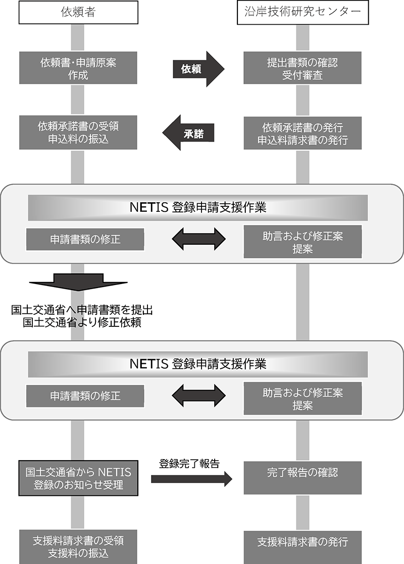 当センターでは、民間において研究・開発された新技術について、国土交通省が運営する新技術情報提供システム(NETIS)への登録申請の支援を行っています。